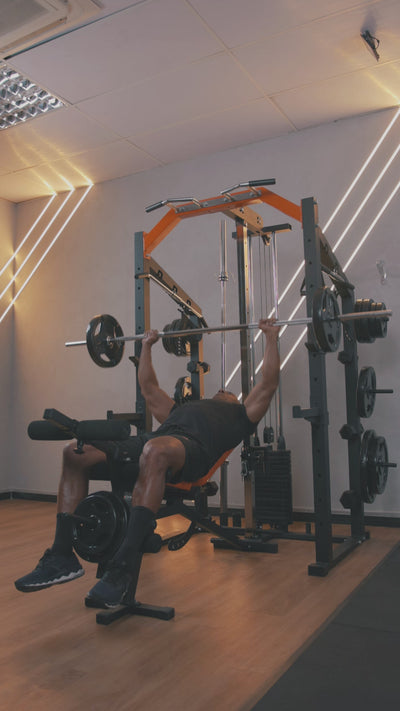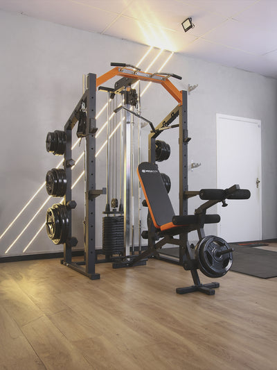 Com MEGA RACK FULL você treina o corpo todo. Robusto e compacto, o MEGARACK, combinado com um banco e seu conjunto de puxadores e tornozeleiras crossover, permite treinar todos os grupos musculares, incluindo membros inferiores e superiores em mais de 50 exercícios. Veja uma demonstração neste vídeo: https://youtu.be/3K5bmZOA2_A?feature=shared
