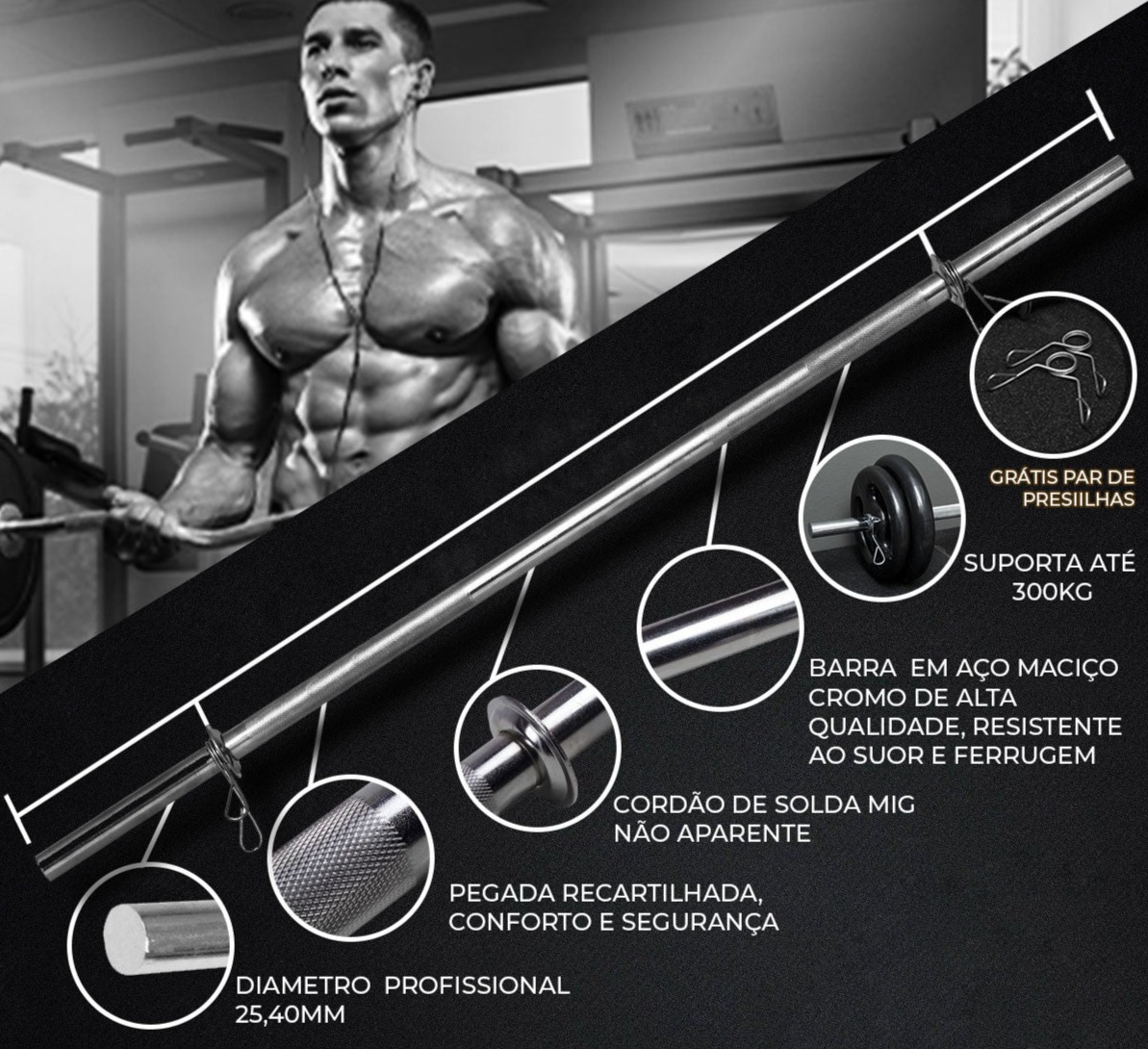 Kit Barras De Musculação + 40Kg De Anilhas + Suportes